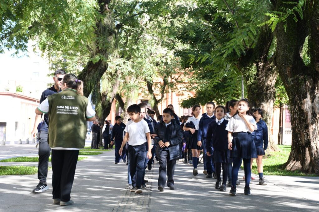 En el marco del programa “Reecontrate con tu ciudad”, que lleva adelante la Municipalidad y que forma parte del Mes de Corrientes, alumnos de cuarto grado de la Escuela Nº666 “Benjamín Serrano”, recorrieron y conocieron este jueves sitios históricos y emblemáticos ubicados en torno a la plaza 25 de Mayo. De la propuesta participan estudiantes de los distintos niveles educativos.